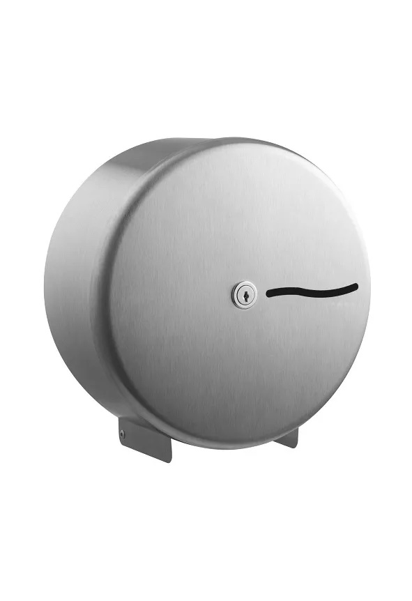 Mini Jumbo toilet tissue dispenser that is key lockable and hinged for easy access to replace the existing roll. It will accommodate a standard mini jumbo roll and has a level indicator to ensure paper is always convenient to monitor.